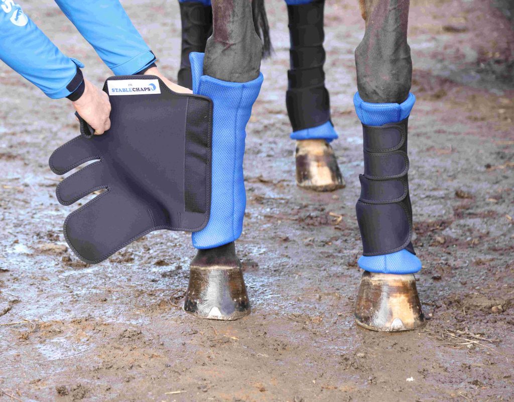 Stablechaps for horses have been designed to help stop horses’ legs swelling if standing in for long periods of time. They apply gentle pressure to aid the circulation and stop legs filling, or stocking up. Stablechaps also take advantage of the benefits of infrared by stimulating circulation and warming the legs in those cold winter nights.